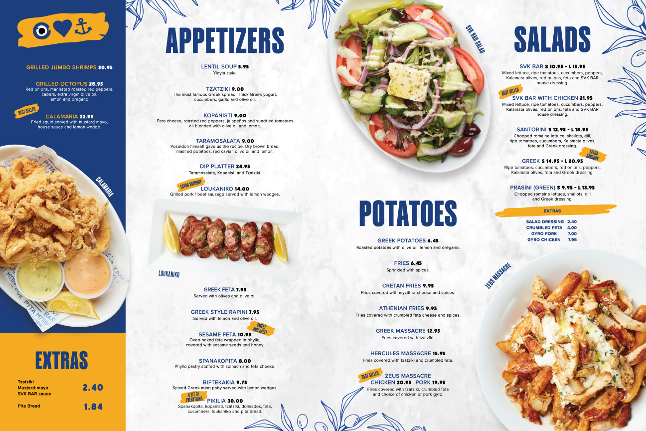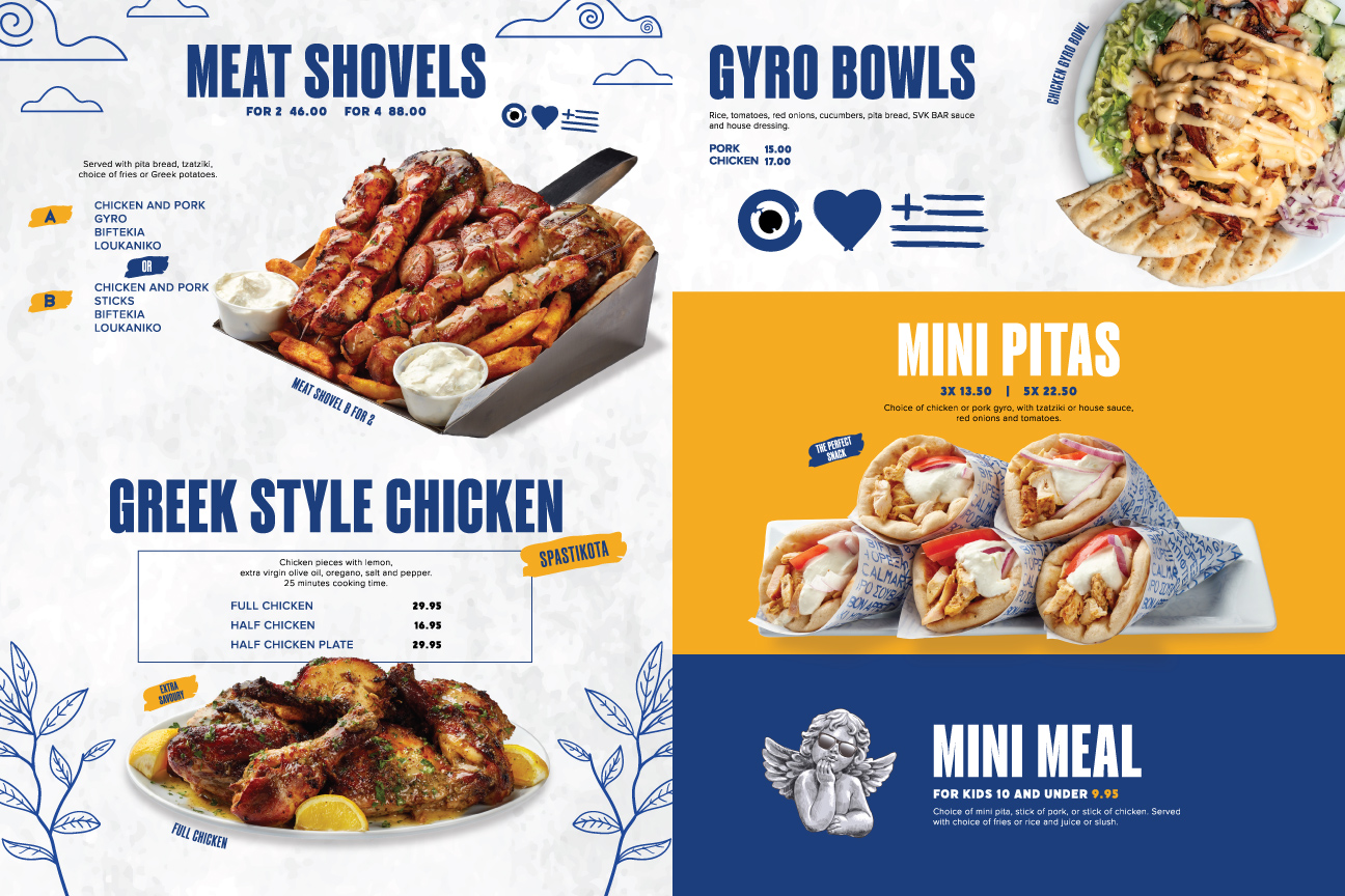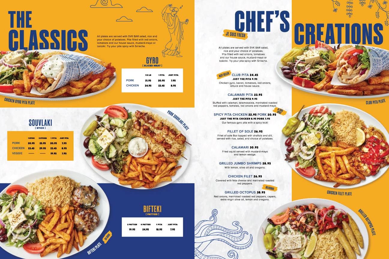 The food menu of the Souvlaki Bar Food Menu